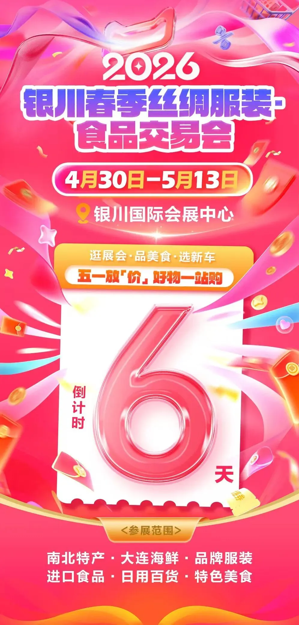 春日正好,不负邀约!4月30日至5月13日,银川国际会展中心,银川春季丝绸服装食品交易会,不见不散!带上家人、约上朋友,一起来逛潮服、品美食、享福利,解锁春日最惬意的逛展时光,把春日的美好与实惠,统统带回家!