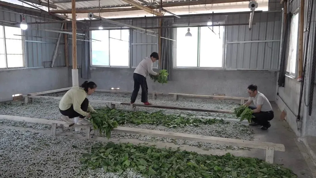 拉仁村桑蚕养殖户 杨岑:现在我们家种了7亩桑树,一年养蚕收入有4万多块,不用离家就能挣钱,真的特别好。