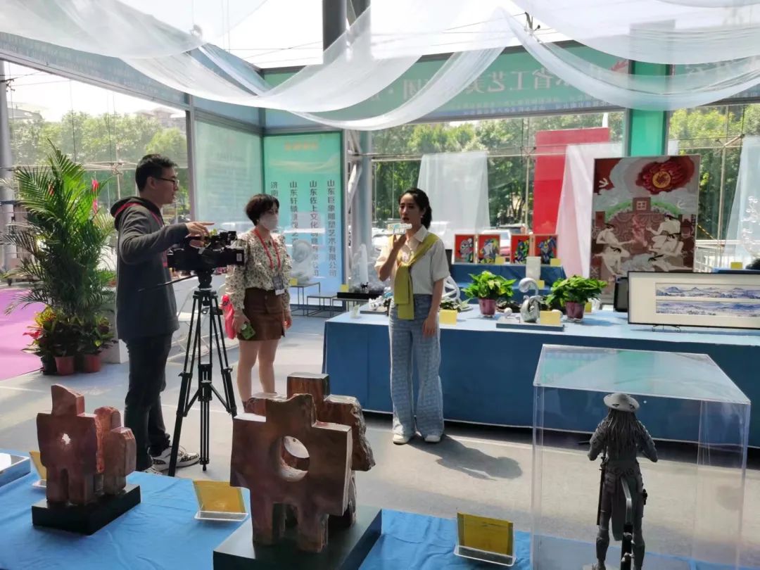 本届展会为打造百合特色,将工艺美术作品与绿植花卉景观组合搭配进行展示,参展作品种类丰富,形式新颖,有传统景泰蓝工艺、泥塑及数字艺术与三维建模技术相结合等多种工艺形式,体现山东手造的独特魅力,展现集团多种业务形态,宣传企业形象,展会期间与各市、企业参展商积极洽谈交流,还有来自省、市等各大电台媒体的采访和播报。