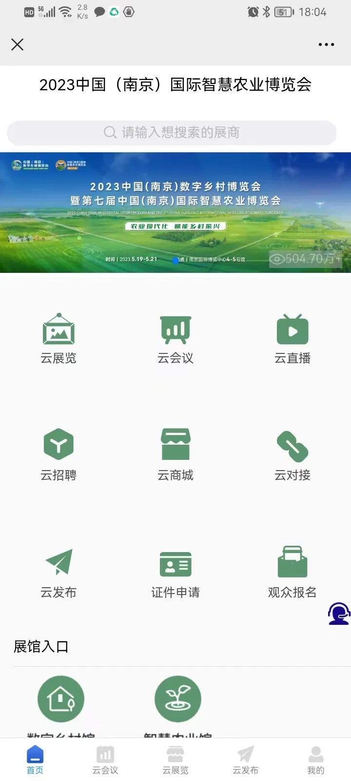 “云上智慧农业博览会”线上展位1个,展示时间为一年。