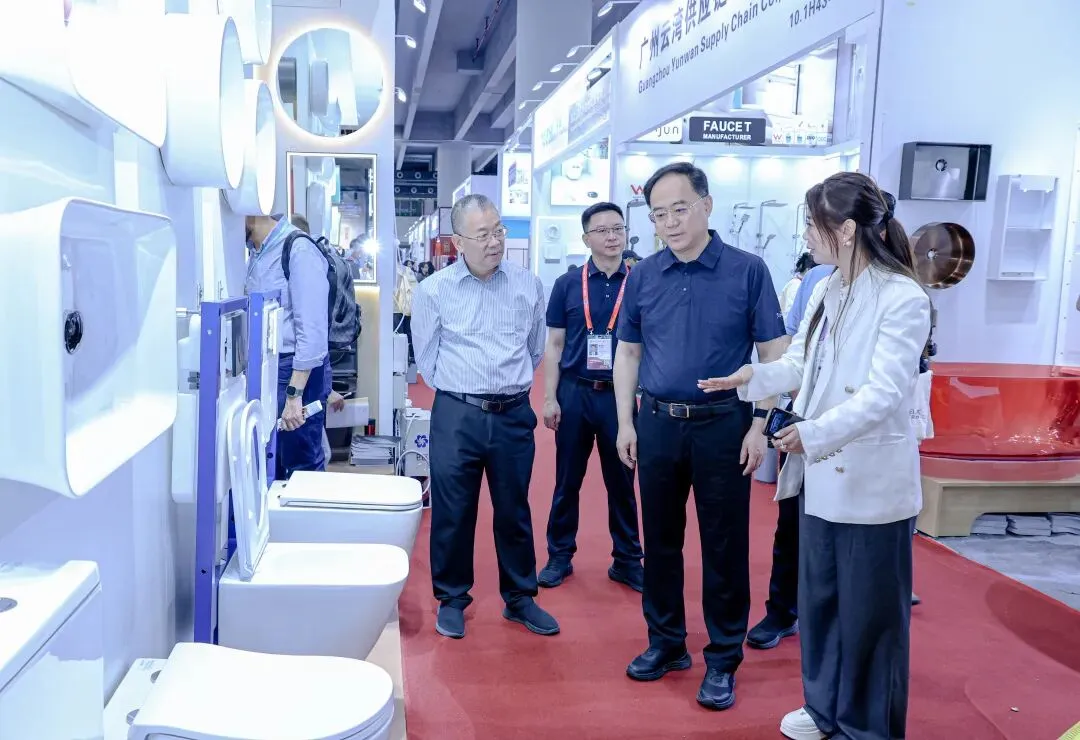 何晓军、蔡淡群一行前往工艺陶瓷、卫浴设备、日用陶瓷等展区,实地察看潮州企业展位,详细了解产品设计、品牌打造、市场行情、商贸洽谈等情况。“潮州产品的原创性、设计性是‘潮州制造’的核心竞争力。”何晓军勉励企业坚定信心、积极应变,敏锐捕捉商机,加强创新研发,用心做好产品设计,以文化为根、创意为魂,注重材料质感、色彩搭配与线条运用,推出更多技术领先、适销对路的潮州优品,用实力斩获更多订单、赢得更大市场。展会现场客商云集,何晓军、蔡淡群向各地采购商热情推介潮州、积极推广潮货,诚邀大家到潮州走一走、看一看,觅商机、寻合作,携手实现互利共赢。