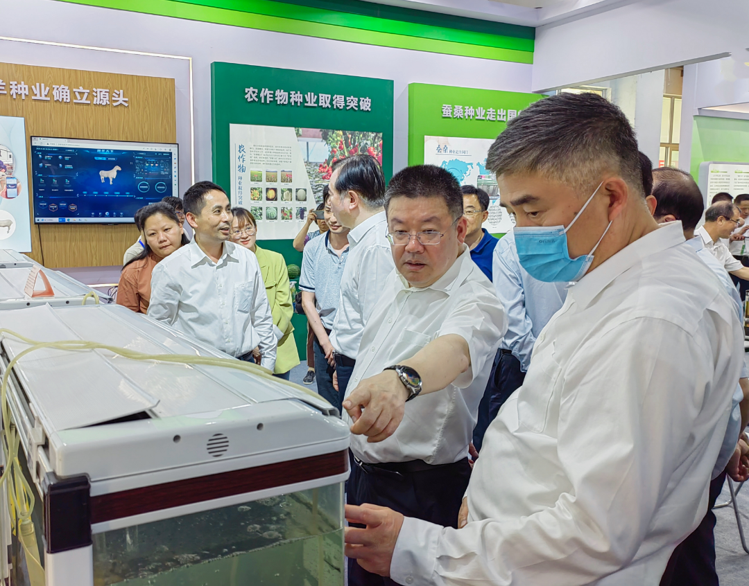 省人大常委会副主任刘忻,省政协副主席陈小平,省农业农村厅党组书记、厅长王通林莅临湖州馆展区指导。