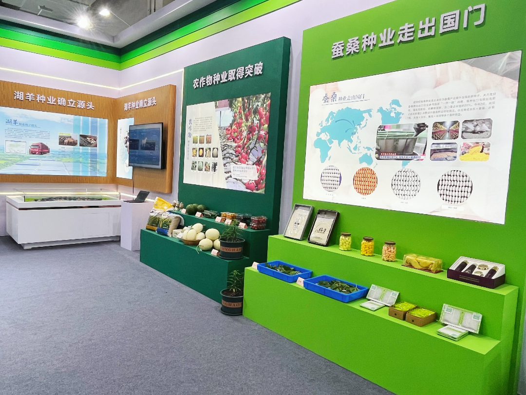湖州馆设在浙江新农都会展中心4号馆,重点突出水产、湖羊两大优势种业,按照水产种业打造硅谷、湖羊种业确立源头、农作物种业取得突破、蚕桑种业走出国门、白茶种业输送全国等5个部分,集中展示我市近年来种业发展成果,充分展现湖州建设种业强市的信心。