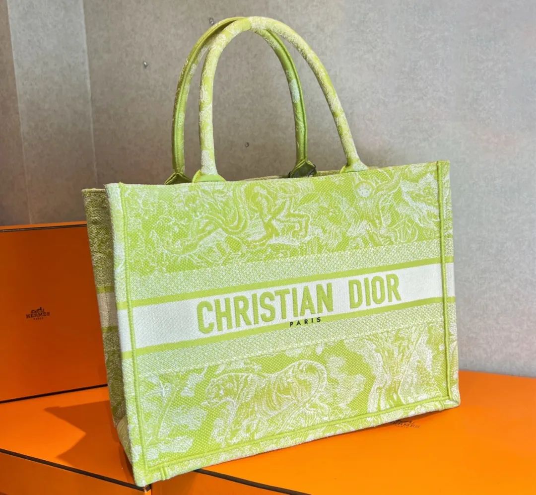 98新Dior 限量动物园系列刺绣book tote托特包 青柠色中号 超好看 自重轻巧 尺寸36厘米
