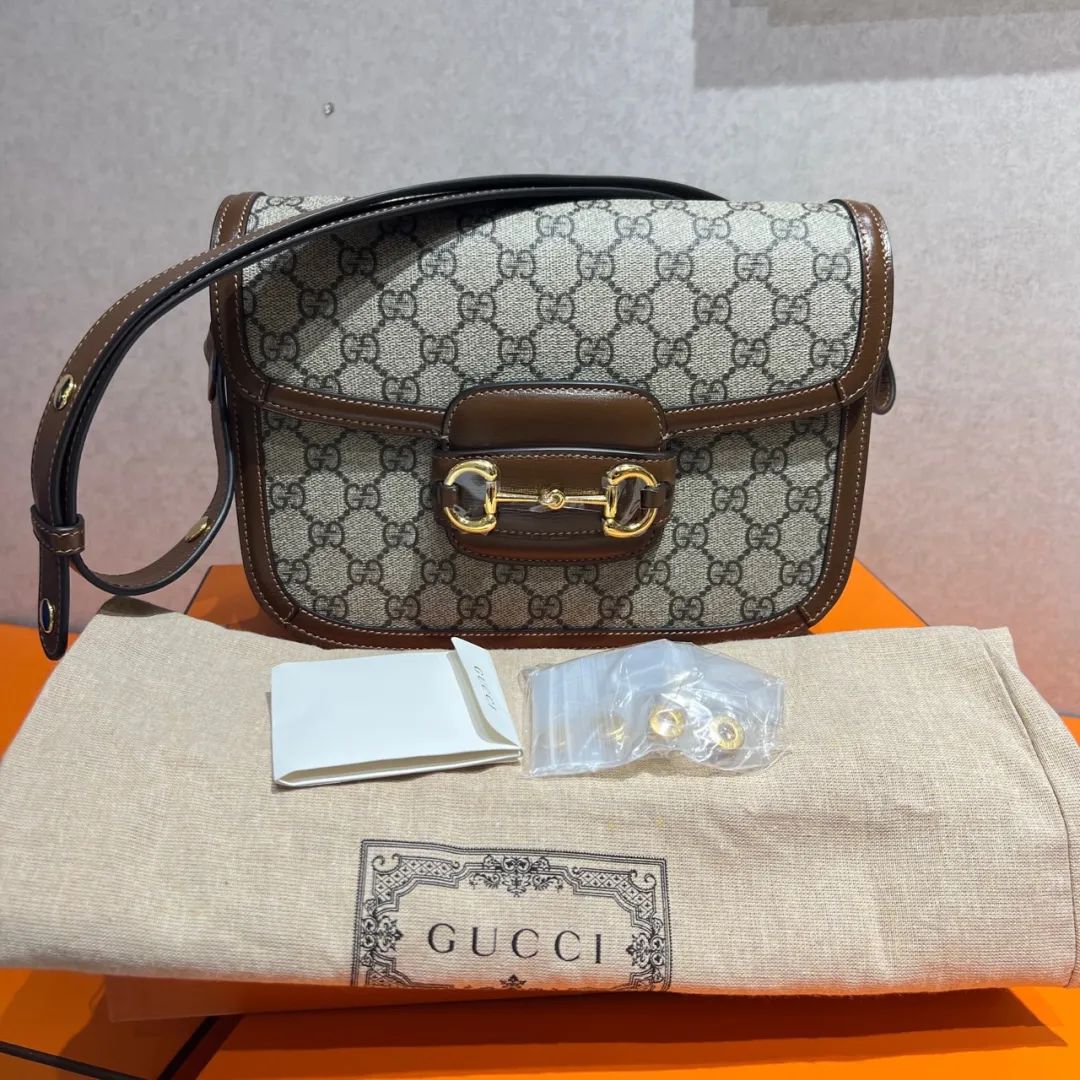 全新搁置有膜Gucci 1955斜挎包 底长25厘米左右 有备用扣尘袋 官网公价23500 我这里?1万小