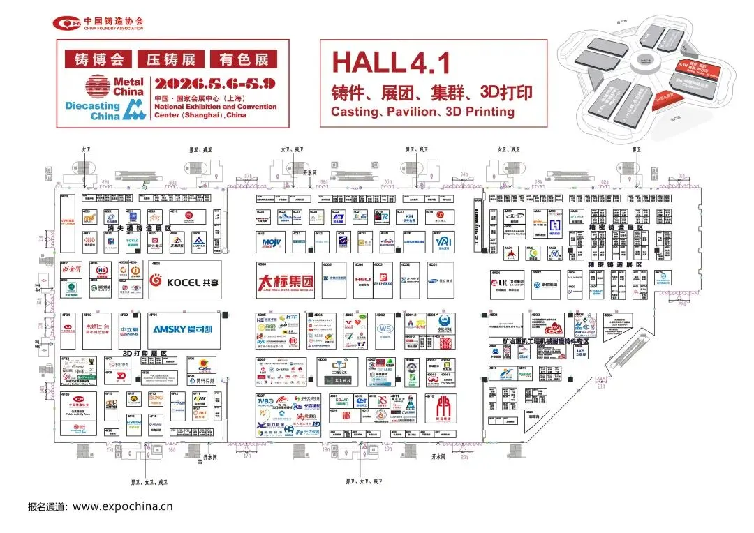 2026年,中国铸造协会喜迎成立40周年。作为行业发展的见证者与推动者,我们诚邀您出席于2026年5月6-9日在国家会展中心(上海)举办的第二十四届中国国际铸造博览会(铸博会)、第十九届中国国际压铸工业展览会(压铸展)暨第十九届国际有色及特种铸造展览会(有色展)。