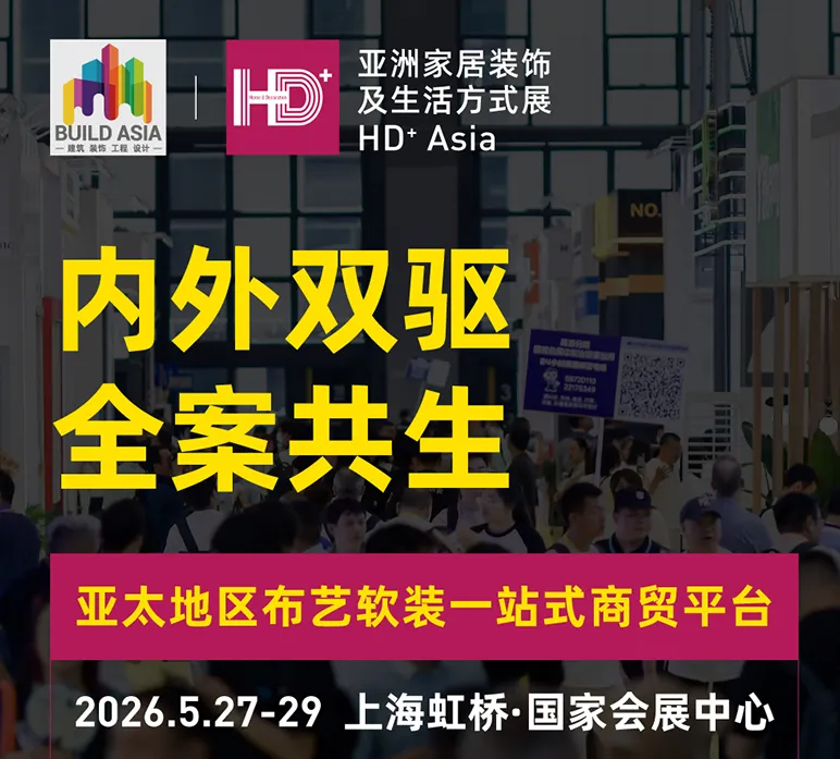 2026 HD+Asia 亚洲家居装饰及生活方式展将于5月27–29日在上海国家会展中心(虹桥)举办。本届展会规模约6.8万㎡,汇聚700+家展商,预计吸引4万+专业观众。