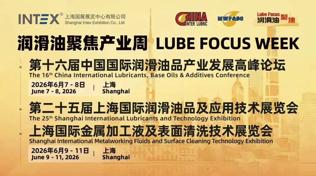 第25届上海国际润滑油品及应用技术展、金属加工液及表面清洗技术展(Inter Lubric China, MWF&SC 2026)将于6月9 - 11日在上海新国际博览中心W1 - W2馆举办。展会规模超25,000㎡,预计350 +国内外优质品牌参展,全力搭建润滑油行业高端展示、深度交流与高效贸易的优质平台。