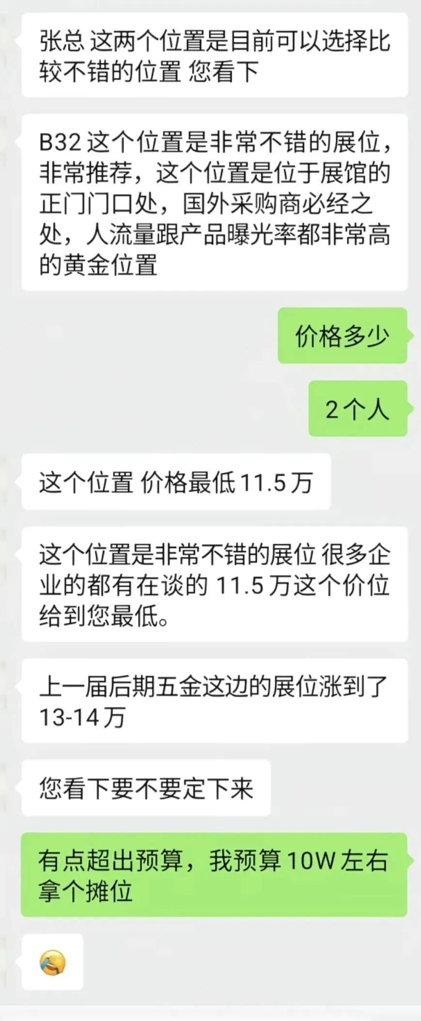 据张先生自述,其通过广州市bs展览服务有限公司预订广交会摊位时,对方以“特装摊位拆分标摊、价格更低”为噱头,承诺提供11.1号馆的摊位,报价11.5万元,并反复确认摊位号不会变动。张先生签订合同后,先后支付了30%定金34500元及剩余尾款80500元。