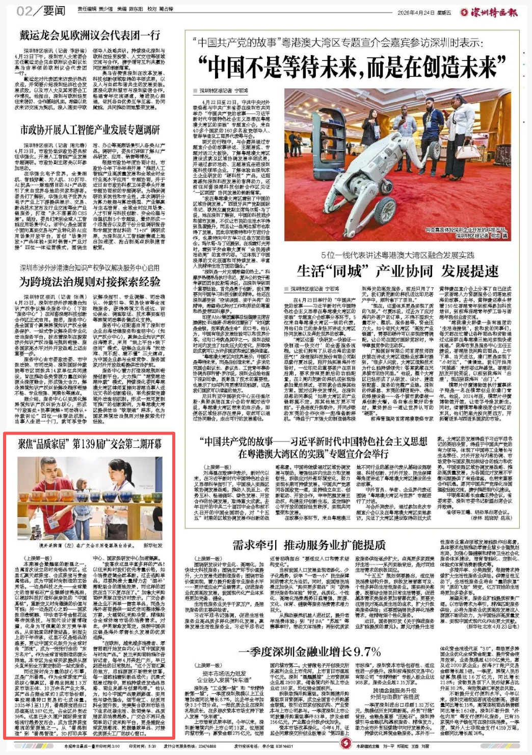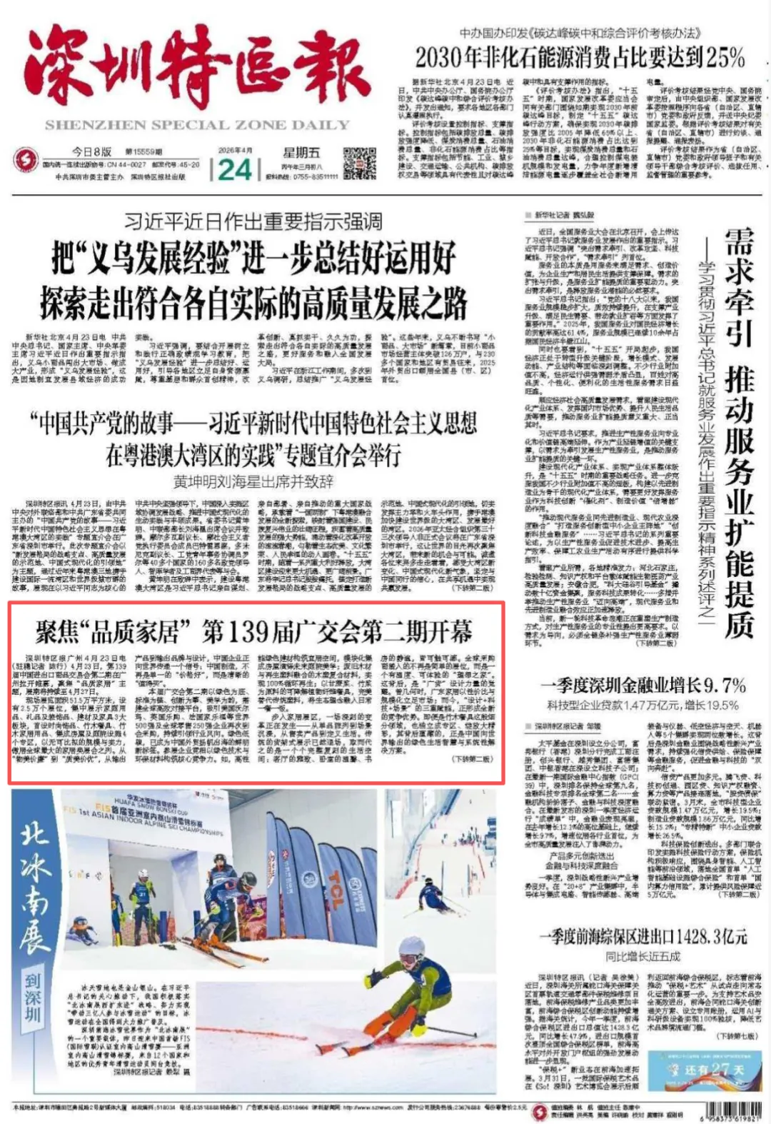 4月24日,深圳特区报刊发《第139届广交会第二期开幕:绿色为底,美学为韵,中国家居正从“好价格”迈向“值得买”》,内容如下: