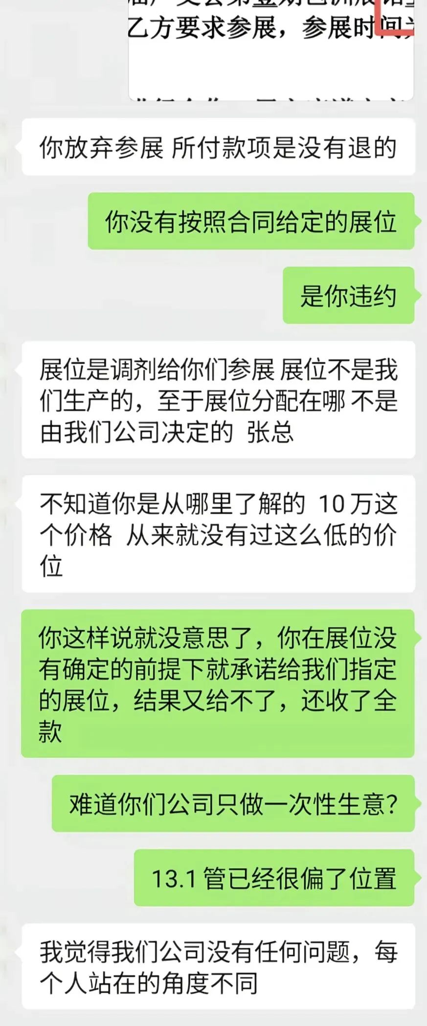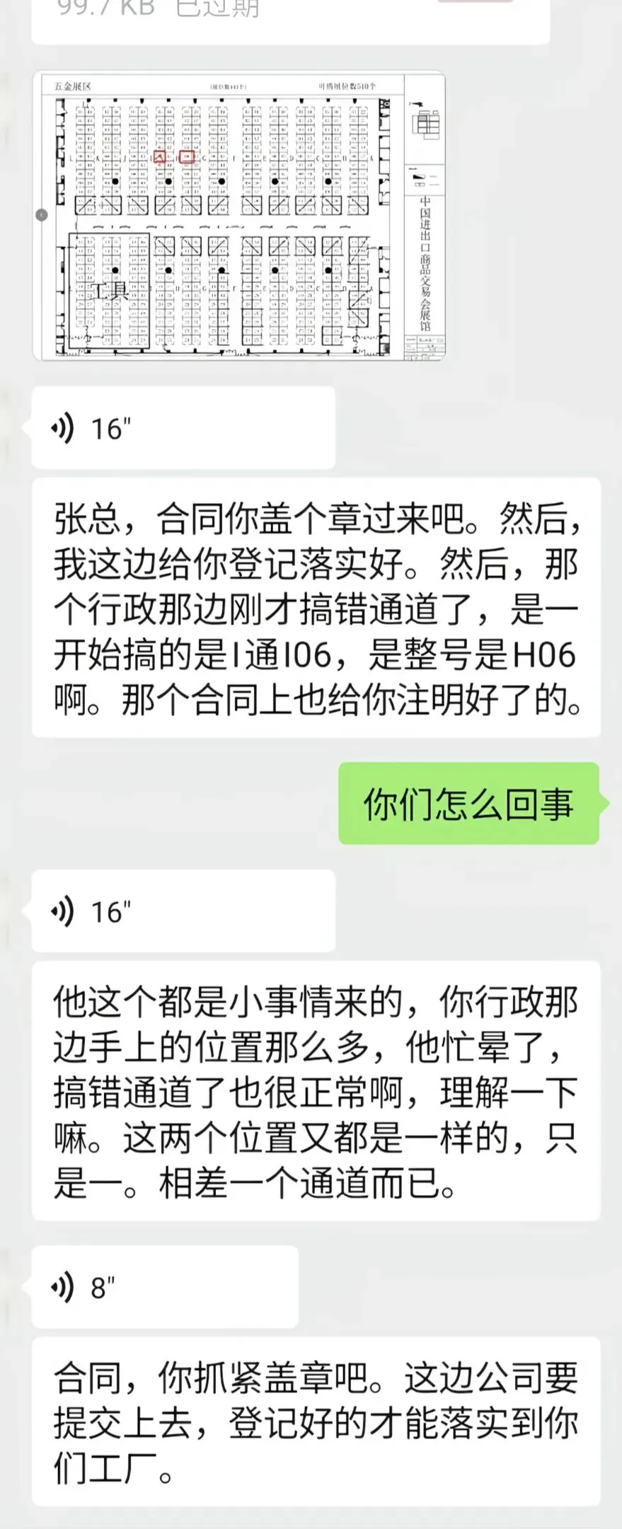 然而,当广交会组委会正式公布各参展商的展位号后,张先生发现,中介此前承诺的11.1号馆展位并未兑现,反而以“展团展位被组委会统一调剂”为由,告知张先生其展位被调整至13.1号馆。
