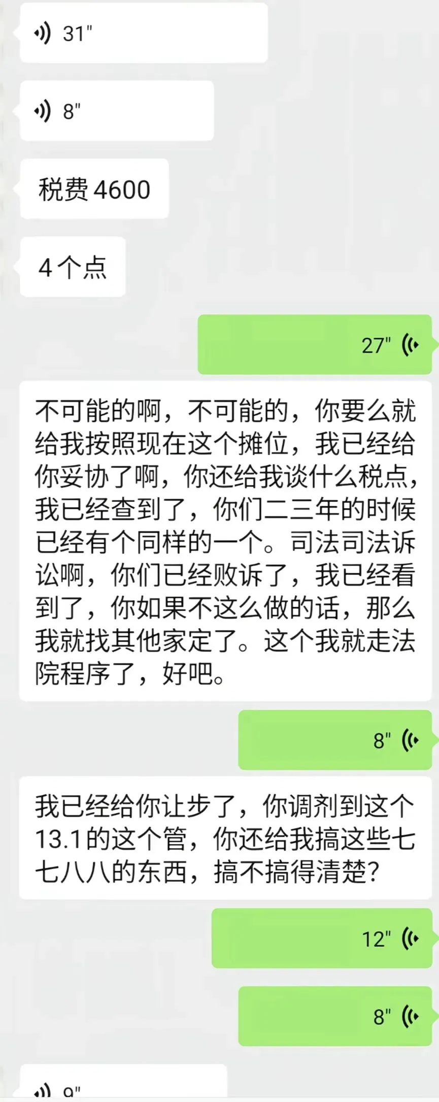 更让张先生气愤的是,在展位多次变更后,中介竟提出额外加收4%税点的无理要求。