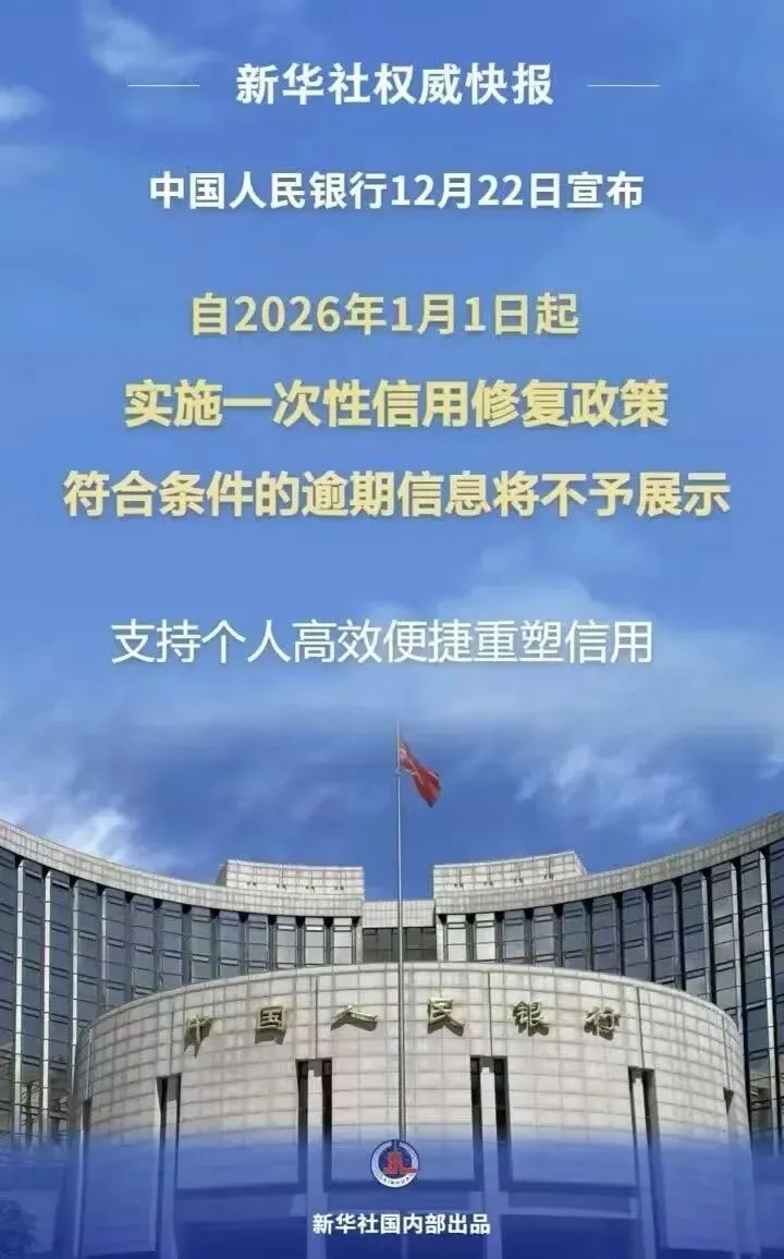 2025年,中国人民银行发布《关于实施一次性信用修复政策有关安排的通知》,明确对符合条件的小额逾期记录实施信用修复。