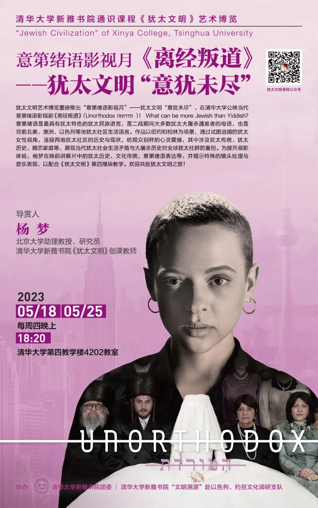 犹太文明艺术博览携手清华大学新雅书院团委与新雅书院“文明溯源”赴以色列、约旦文化调研支队重磅推出“意第绪语影视月”——犹太文明“意犹未尽”,导赏与放映当代意第绪语影视剧《离经叛道》(Unorthodox)!