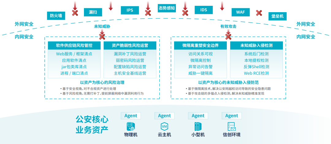 其一,基于安全视角的不合规资产管理和风险发现能力,解决公安网老旧系统的漏洞和安全隐患;