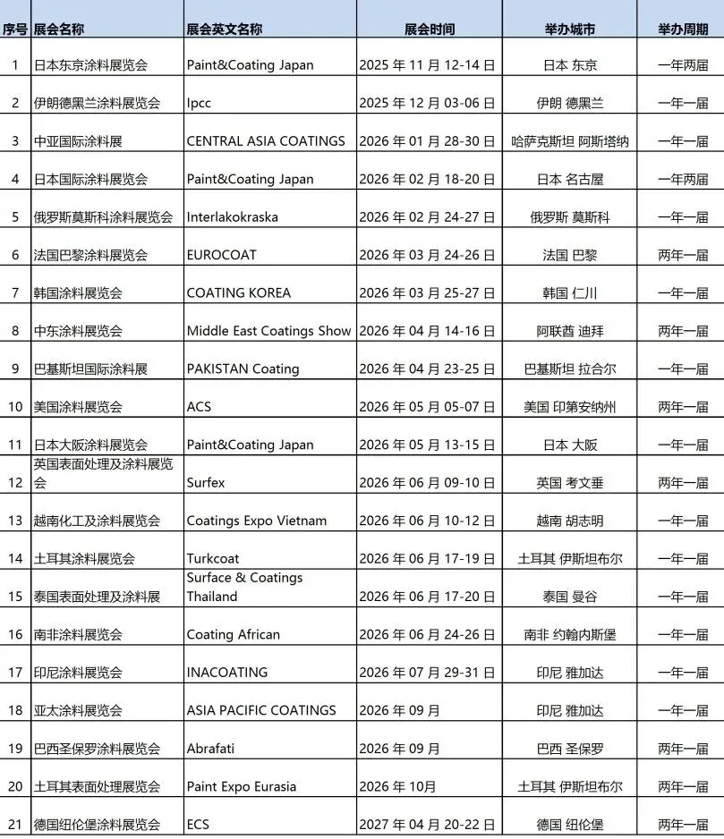 2026年全球涂料展会计划表