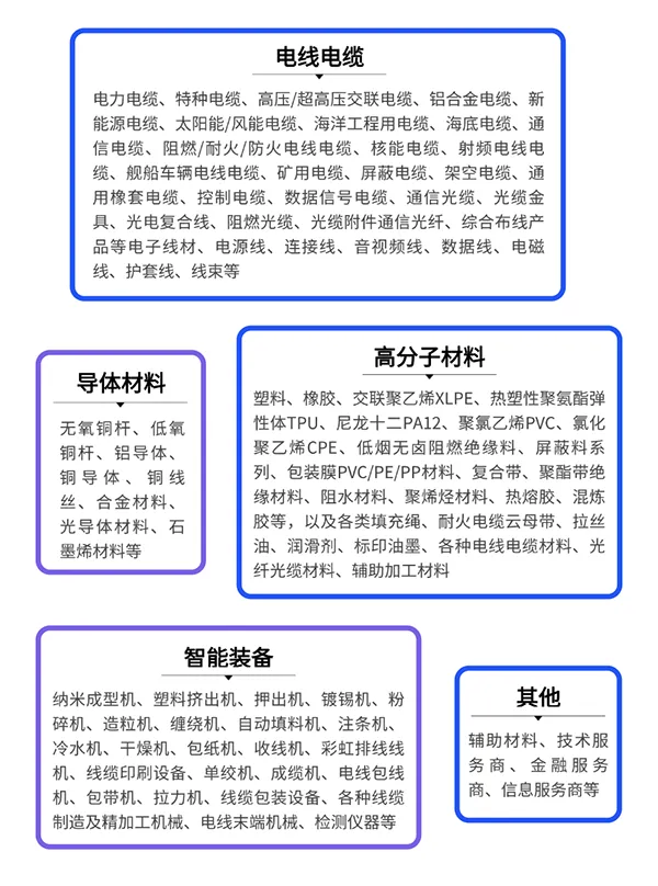 5000㎡的展区内,展品矩阵实现全维度覆盖:从电力电缆、特种电缆、高压/超高压交联电缆等全品类电线电缆及配套产品,到无氧铜杆、低氧铜杆等导体材料与塑料、橡胶等高分子材料,再到塑料挤出机、绞线机等智能装备与各类配套服务,全产业链资源都能一站式触达。