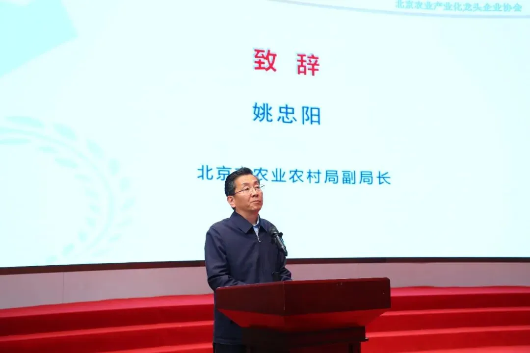 北京市农业农村局副局长姚忠阳致辞,充分肯定协会在服务企业、产业融合、乡村振兴、保供稳价等方面的突出成效。他指出,龙头企业是首都农业新质生产力的核心力量。“十五五”开局之年,北京将坚持科技、绿色、质量、品牌强农,推进农业创新与城乡协同,提升供给保障与产业竞争力。他提出三点期望:一是坚守保供使命,守牢食品安全底线;二是坚持创新驱动,做强农业新质生产力;三是深化京津冀协同,带动小农户衔接现代农业,助力乡村全面振兴。
