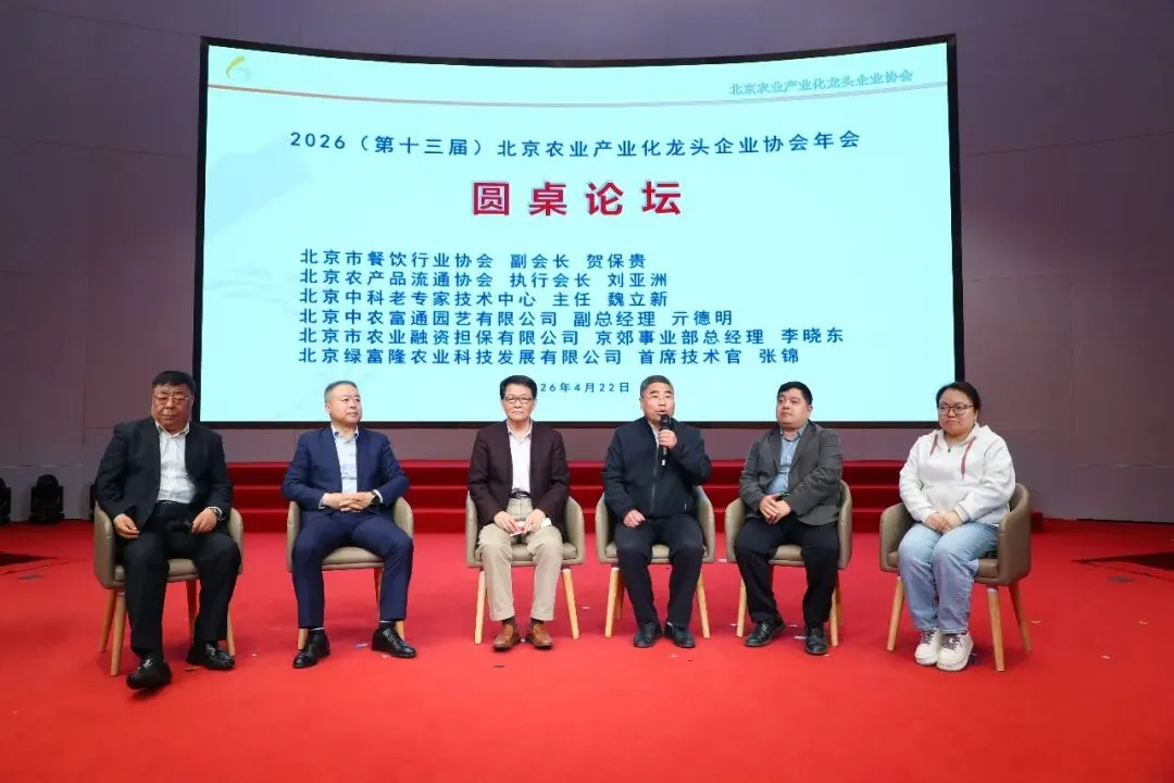 以“农业产业化可持续发展”为主题的圆桌论坛,由北京中农富通园艺副总经理亓德明主持,餐饮、流通、科研、金融、生产领域嘉宾共同参与。与会嘉宾围绕科技赋能、产销衔接、金融支撑、绿色低碳、品牌升级等展开交流,提出一系列可落地、可复制的发展建议,形成“科技引领、产销联动、金融支撑、绿色发展”的行业共识,为首都农业高质量发展提供有力支撑。