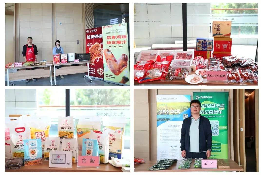 大北农集团大有谷系列优质农产品、顺鑫农业旗下牛栏山白酒、牵手果蔬饮品、鹏程肉品、二商大红门五肉联优质畜禽肉制品、首农股份华都食品、古船食品系列米面粮油、密云不老屯特色农产品、中国高促会成果转化项目、中国农科院杜嘉大健康产品、内蒙古沙漠特色肉苁蓉、养生星油藤茶、湖南慈利供销投资特色农产品、上海伽易信息技术智慧农业解决方案、北京农担金融服务、北京农商银行、邮储银行昌平支行惠农金融产品、北京泷源农业产业化研究院科研成果等悉数展出。