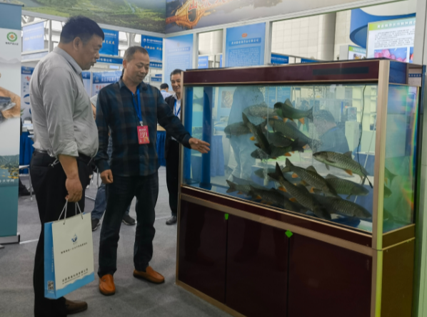 虹鳟具有味道鲜美、刺少肉多、营养丰富、人工繁殖简便等特点,是我国鲑鳟鱼养殖业的主导品种之一,养殖产量占到我国鲑鳟鱼总产量的90%。根据2022中国渔业统计年鉴,2021年我国鲑鳟鱼养殖总产量约为3.83万吨,其中鳟鱼养殖总产量约为3.58万吨。在中国水产科学研究院黑龙江水产研究所展台,虹鳟“全雌1号”新品种吸引着大家的目光,工作人员介绍,该品种在相同养殖条件下,与普通虹鳟相比,22月龄鱼体重提高19.28%,雌性率为96.7%。“在进行混合性别群体养殖时,由于性成熟年龄不同,雄鱼往往比雌鱼先停止发育。若群体为全雌鱼的单性别养殖,可相对延长养殖周期,使商品鱼规格更大、整齐度更高。”虹鳟“全雌1号”新品种将进一步优化我国虹鳟养殖结构,为我国鲑鳟种业的提档升级做出贡献。