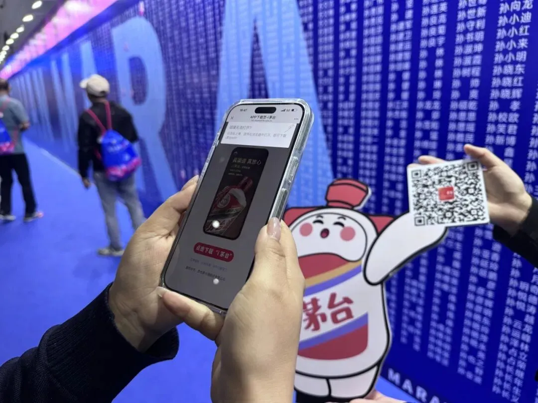 作为茅台数字营销的“代言人”,憨态可掬的“小茅”一经出现,便瞬间成为了博览会现场的“顶流明星”。这个以茅台酒瓶为原型、灵动可爱的卡通形象,打破了传统白酒品牌的严肃印象,以极具亲和力的姿态融入年轻群体与运动爱好者之中。