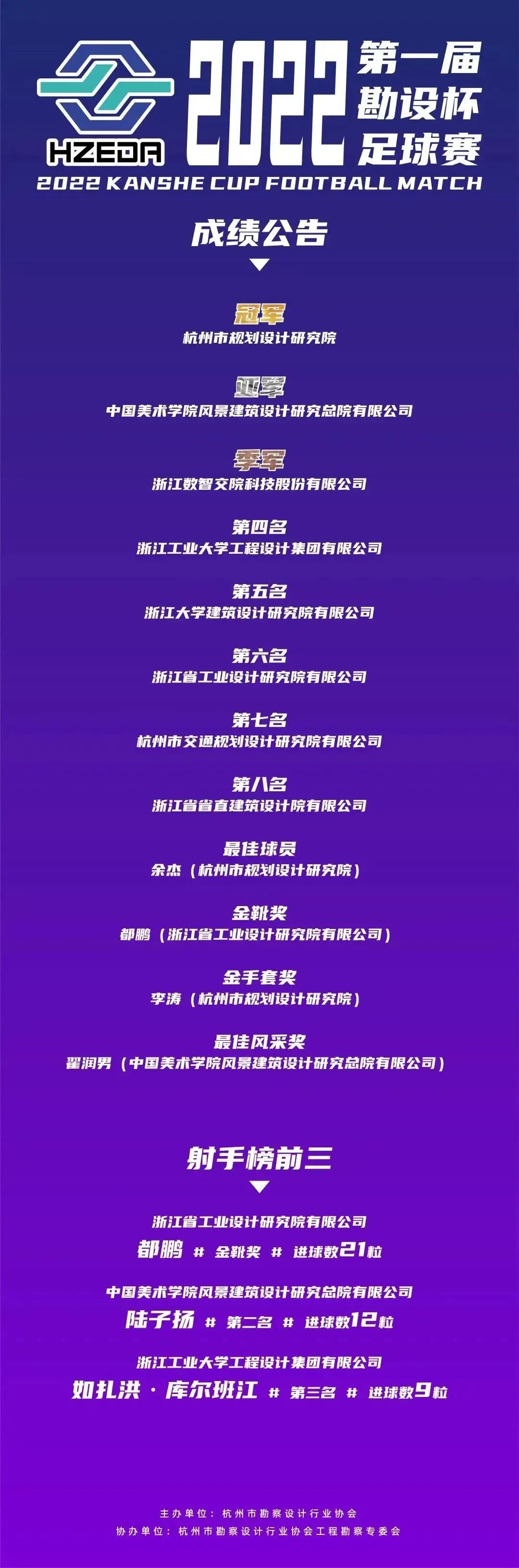 杭州市首届“勘设杯”5人制足球赛共有22支球队,286名球员报名参赛。在当时特殊的疫情情况下,喊出了“勇者无畏”的口号,最终顺利举办获得成功。