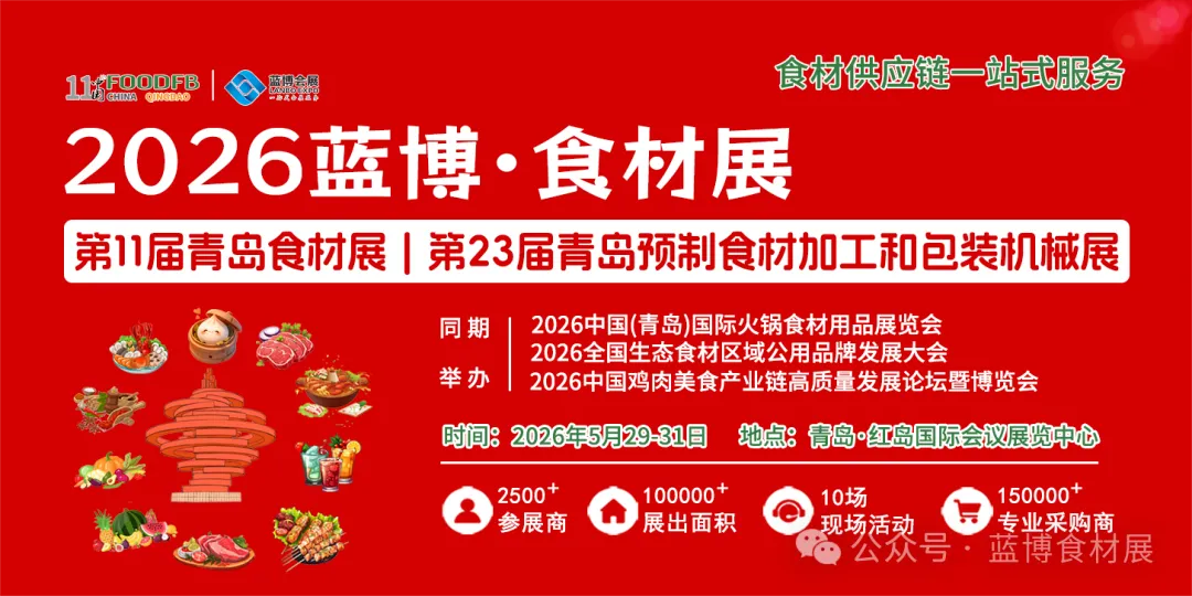 2026中国(青岛)国际食材展览会5月29-31日在青岛红岛国际会展中心举办!展会的目的主要是帮助更多预制菜供应企业打通餐饮品牌、食材基地到专业院校、研发机构乃至相关设备、生产企业间交流壁垒,重点打造具有未来巨大潜力的重点预制菜产业集群。展会规划13大展厅,展出面积预计100000平方米,四大主题板块:火锅烧烤食材板块、预制菜板块、调味品及食品添加剂配料板块,相关加工和包装配套板块,涉及行业产业链前沿的新产品、新技术、新资讯。