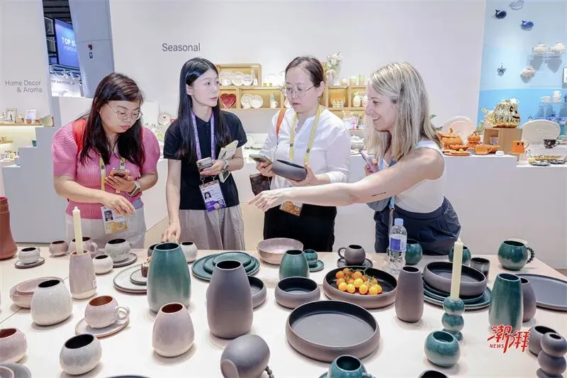 面对复杂的国际形势与激烈的市场竞争,潮州企业主动应变,通过产品创新、市场布局调整与智能化改造,增强抗风险能力,开拓多元市场。“今年参展新品占比达50%以上,为应对复杂多变的国际形势,公司从去年开始组织开发人员深入中亚、南亚、北亚、西亚等地区调研,将当地元素融入产品设计,重点开拓‘一带一路’沿线市场。”广东海鸿陶瓷有限公司展会负责人张赞荣说。