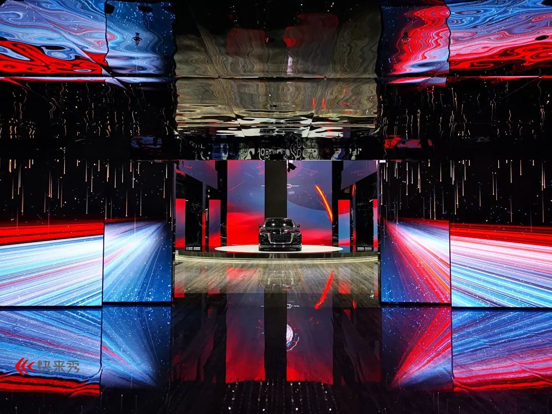解构主义的场域体验+多重感知力设计,为充分体现新红旗“极致梦幻、体验愉悦”的设计特色,通过元素解构和多重感知力的融合,将新红旗的美学特征和技术革命,转化为一个个剧情化场景,同时结合多重感知力体验设计,让观众听见空间、闻到形状、看到语言,释放红旗IP的庞大宇宙,体现车作为“第三空间”,在未来与人类关系的革命性创新。