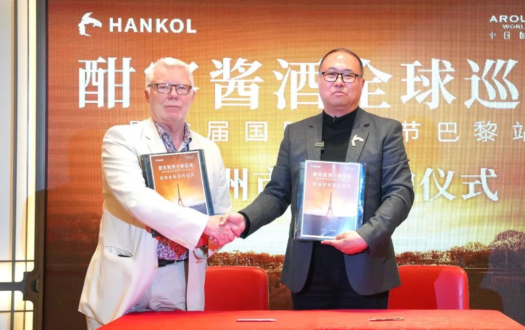 法国Blanc Mesnil 市副市长Karim Boumedjane,法曼尼国际酒业董事长、法国法中酒业协会主席、法国江西商会会长王亚青,法国国家铁路公司经济学家、现借调法国总理府战略与展望总署高级专家、中国旅法工程师协会前会长倪金城出席会议并致辞,为“中国酱酒世界行”取得的圆满成果表示祝贺,并为“国际酣客节”的成功举办送上鼓励与祝福。活动现场还举行了酣客君丰欧洲市场签约仪式,这意味着酣客酱酒正式在欧洲大陆扎根落户。