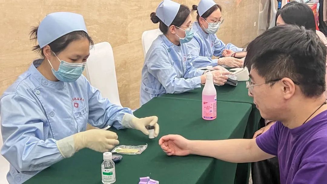 展示区内还设置了健康义诊区,免费提供量血压及测血糖服务。