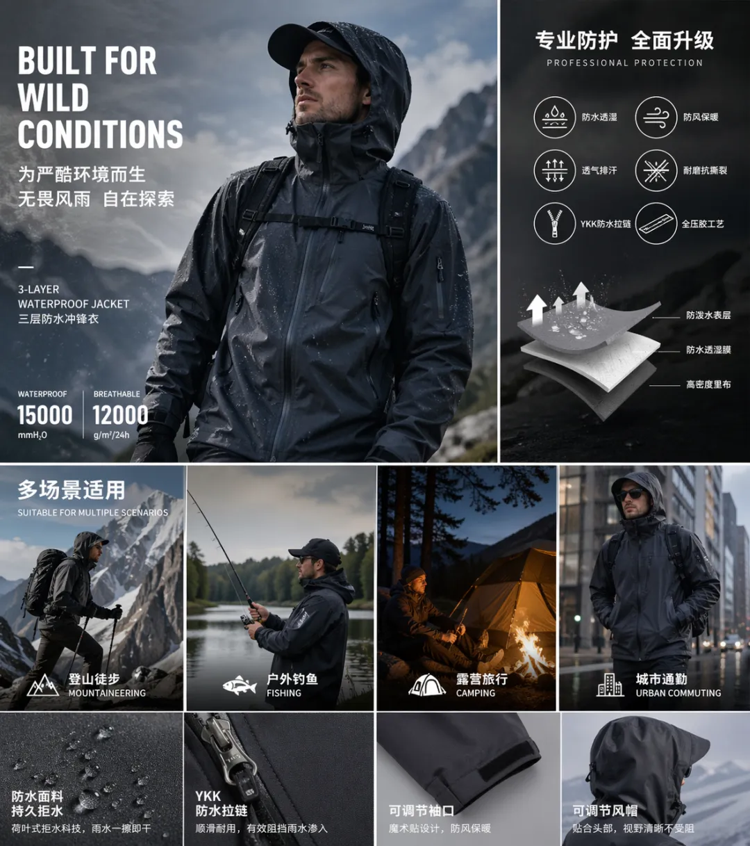 像冲锋衣、滑雪服、猎装这类产品,其实有个特点: