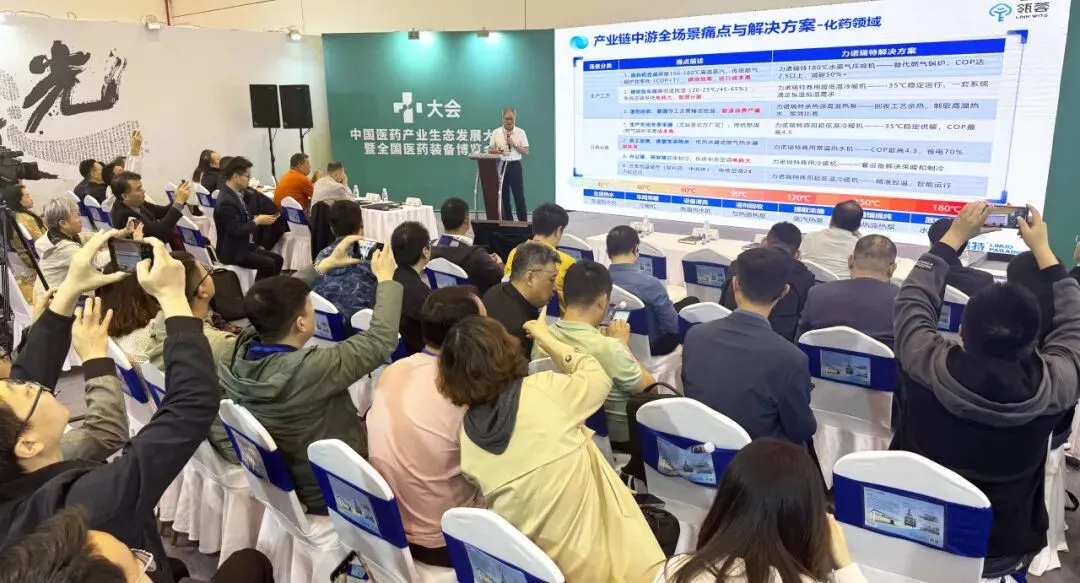 4月25日,苏州。在医药产业迈向“零碳制造”的关键节点,力诺瑞特携全温区工业热泵解决方案亮相中国医药产业生态发展大会(展位号:B046)。作为当天唯一进行专题分享的热泵行业专家,力诺集团副总裁、瓴荟智库专家刘兴村在“制药工业内增长案例大会”上发表题为《制药行业低碳转型痛点破解》的演讲,分享了力诺瑞特热泵技术在化药与中药用热领域的深度实践,引发行业高度关注。