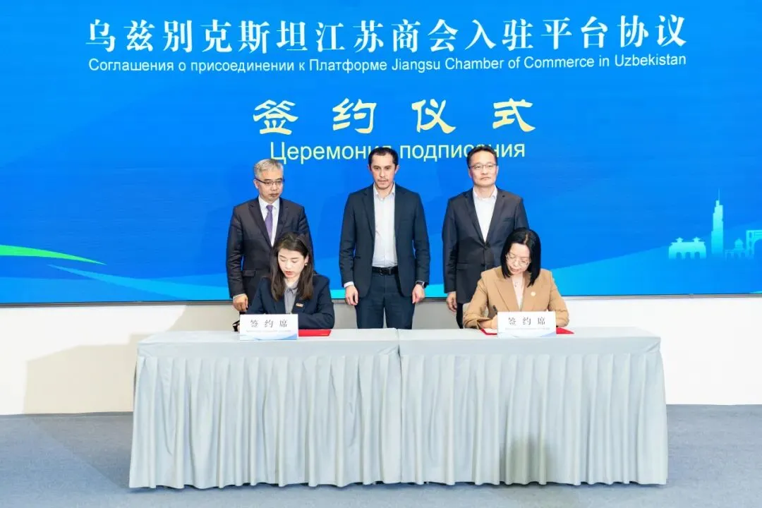 现场完成两项重磅签约,乌兹别克斯坦轻工业发展署与乌兹别克斯坦江苏商会正式入驻中国—中亚贸易畅通合作平台,标志着双方将在纺织服装、轻工制品等领域推动产能与技术精准对接,共同拓展国际市场。