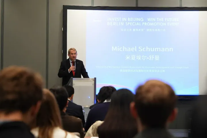 为深化北京与柏林经贸合作、推动优质资源对接、向德国市场全面展现北京高质量发展机遇与一流营商环境,4月23日,德国柏林“投资北京推介会”在柏林万豪酒店圆满举行。本次活动由北京市投资促进服务中心主办、中国工商银行德国法兰克福分行支持,以“投资北京 赢得未来”为主题,汇聚德国政商学界、行业协会、高校科研机构及重点企业代表约60人,围绕生物医药、集成电路、新能源、高端制造、健康养老等重点领域,开展政策解读、项目推介、合作签约与精准对接,取得丰硕成果。