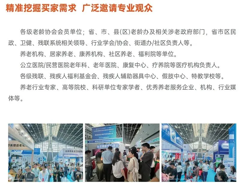 本届以“冀聚银龄·共筑未来”为主题,聚焦养老全产业链,涵盖智能康养、康复辅具、医养结合、老年用品、适老改造、养老服务等领域,预计展览面积3万㎡,汇聚500+家品牌企业,同期举办产业峰会及供需对接会,打造华北地区银发经济一站式对接平台。
