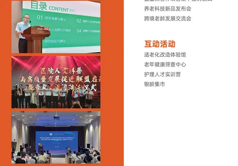 对接活动;设置适老化改造体验馆、老年健康筛查中心、护理人才实训营、银龄集市等互动体验场景,实现 “展、论、洽、训、体验” 五位一体高效联动。
