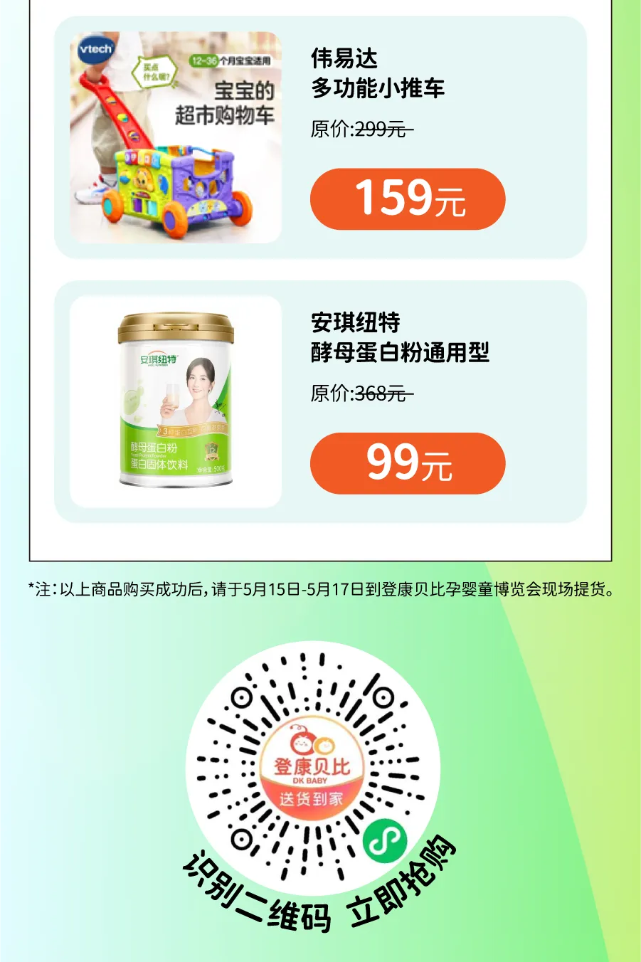 【登康贝比 · 孕婴童博览会】限量爆品提前抢,低至��.��元起!预定锁货,现场直接提货带走