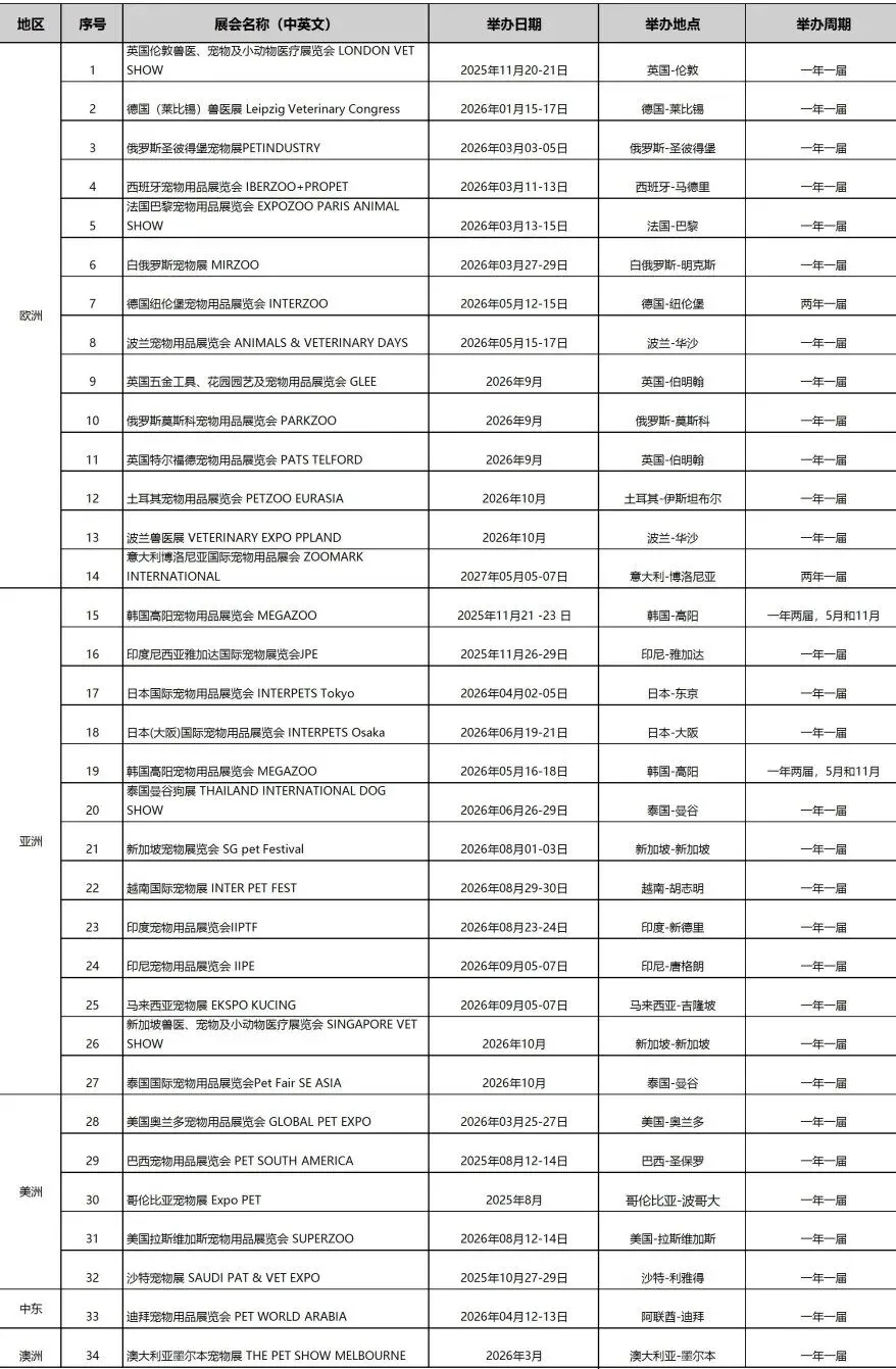 n 其它:动物保护产品、兽医产品、电子数据处理、公园设施及产品、专用运输服务、贸易文献资料、宠物书刊、贸易杂志等