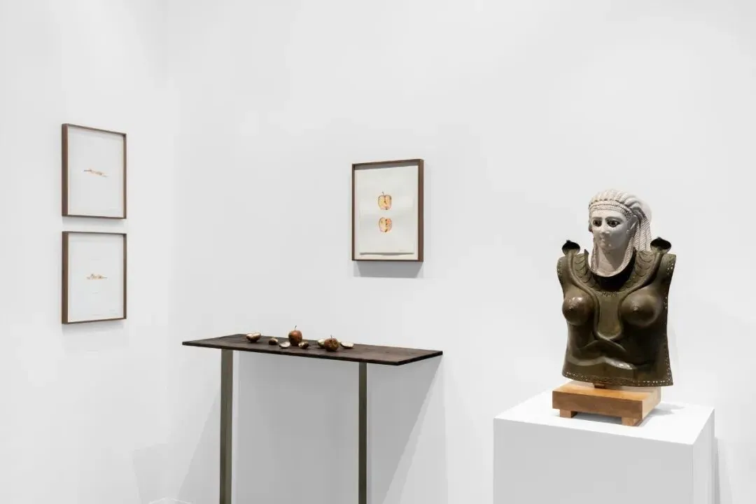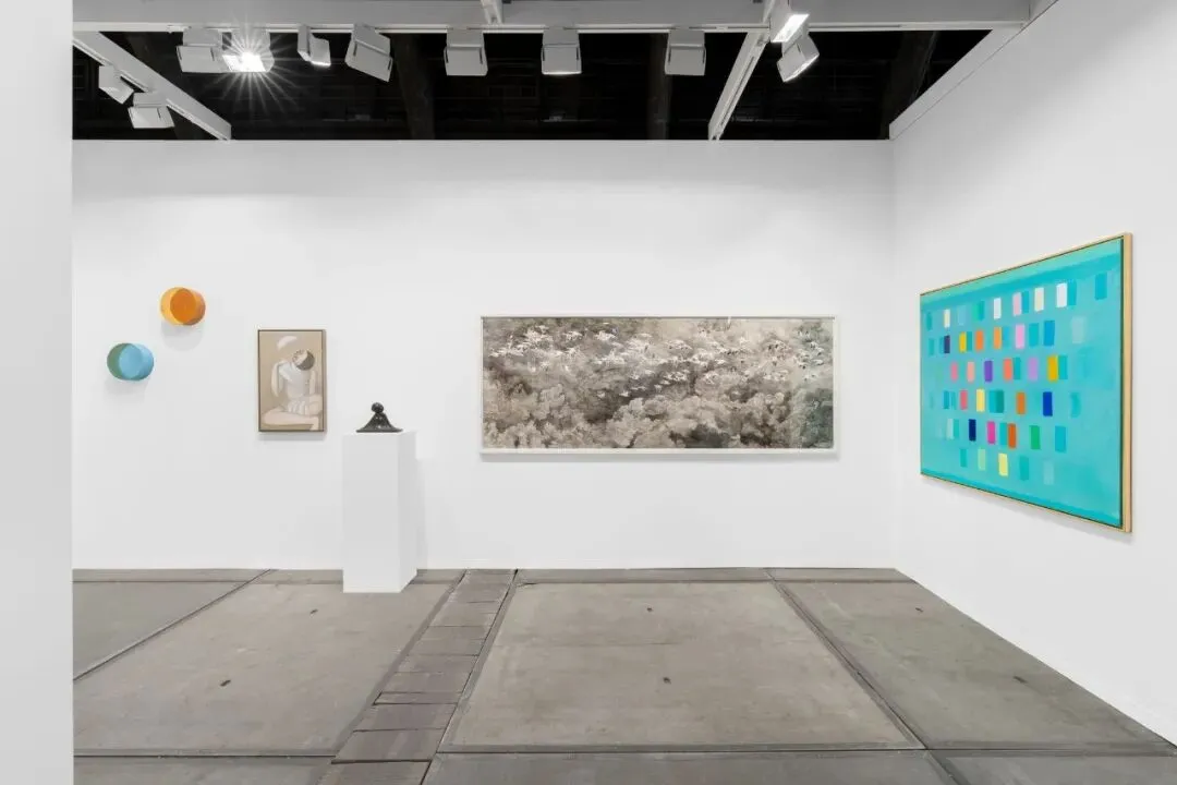 展位亦呈现了季鑫的绘画与雕塑作品。艺术家回忆道:“那段时间我阅读了较多佛教典籍,如《指月录》,因此创作了一位年轻的罗汉形象。魏晋佛教造像影响了我对人物结构与衣褶的处理方式,也让我在人物造型与空间的扭曲中寻求造型美感。”谈及雕塑,他进一步解释:“形象从一条水平线缓缓展开,如波浪般逐渐形成人物轮廓,仿佛维纳斯的诞生。”梅迪·哈迪扬卢(Mehdi Ghadyanloo)、海因茨·马克(Heinz Mack)迪伦·克劳斯(Dylan Solomon Kraus)、达斯汀·耶林(Dustin Yellin)、佩特拉·科特赖特(Petra Cortright)以及哈维尔·卡勒加(Javier Calleja)的作品也为此次展位增添多元面貌。其中,科特赖特的个展将于今年11月在阿尔敏·莱希 - 布鲁塞尔开幕,卡勒加的个展也将于6月在巴黎开幕。