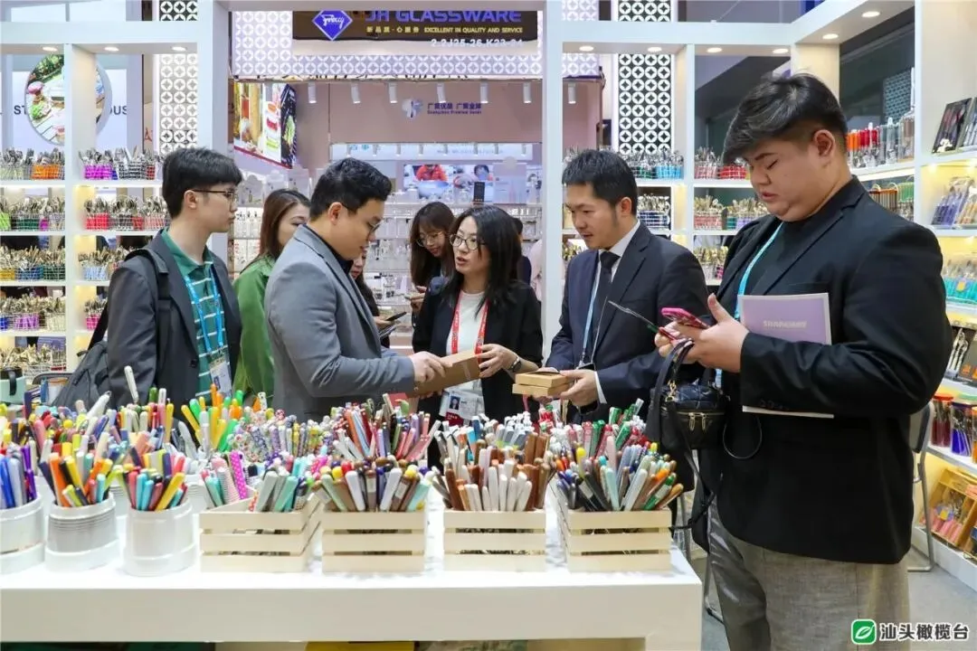 正大团队在几家汕头企业的展位间走走停停。日用塑胶制品展位上,几位采购代表拿起收纳系列样品反复端详,对比不同材质的厚度与手感;几步之外,一家陶瓷企业的台面上,几套新近打样的青花彩瓷餐具被依次摆开,工作人员一边展示一边回应着关于花色定制与交货周期的询问。再往前,几位代表围在工艺家居展区,轮番拿起手工家居饰品细看,一边轻抚纹路一边对照产品说明。整个上午,正大团队在汕头展位间来回穿梭,交谈声、样品摩挲声与展馆的人流声交织在一起。