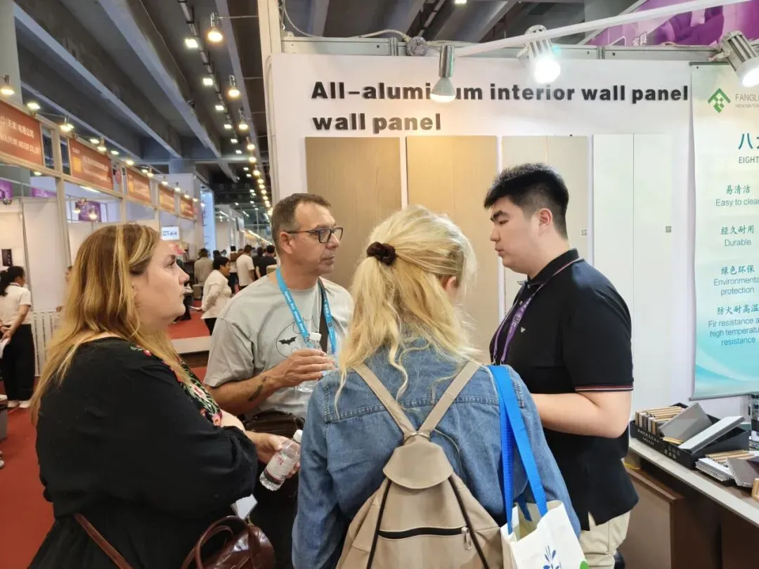 正在广州举行的第139届中国进出口商品交易会(广交会)第二期上,山东方霖新材料有限公司携铝单板、铝幕墙、内墙板及全铝家居等核心产品亮相建材及家具展区。开展以来,展位吸引了来自东南亚、南亚、欧美、非洲等多个国家和地区的工程采购商及家居代理商驻足洽谈,铝质建筑装饰材料在国际市场获得积极反馈。其中,内墙板和全铝家居成为本届展会上最受关注的两大产品线。