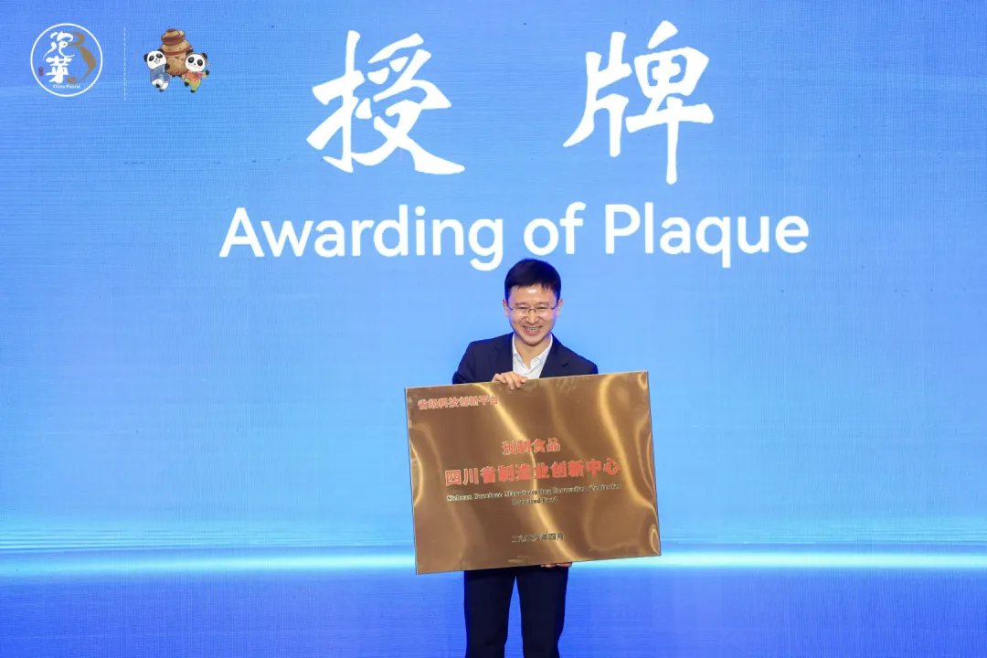 首先进行的是四川省预制食品制造业创新中心授牌仪式及成果发布,据悉该创新中心拟认定主体为四川省川味食品产业创新有限公司,专注于川味食品技术研发与创新服务,此次授牌将进一步强化眉山预制食品产业的技术支撑,推动科研成果转化落地,助力产业迭代升级。四川省食品饮料产业协会会长白鸿杰代表创新中心发布了基料风味图谱与标准调控技术、发酵风味机理与定向调控技术等多项技术成果,并介绍了这些技术在川娃子食品、王家渡食品、希望食品、安井食品等龙头企业上的成功应用情况,这些技术成功转化应用成为了驱动产业高质量发展的最强引擎。