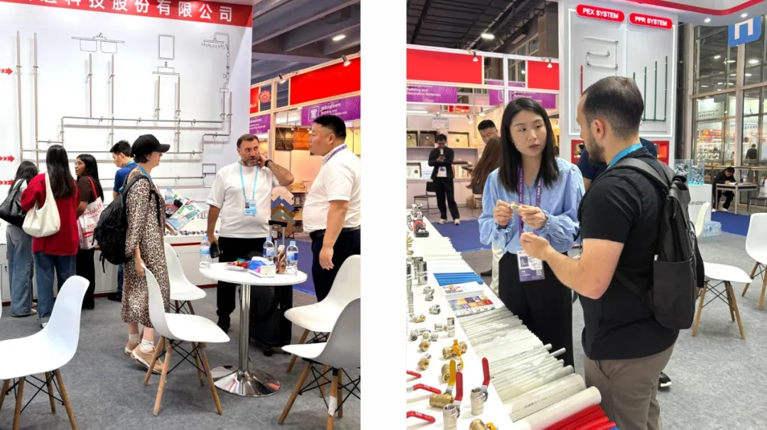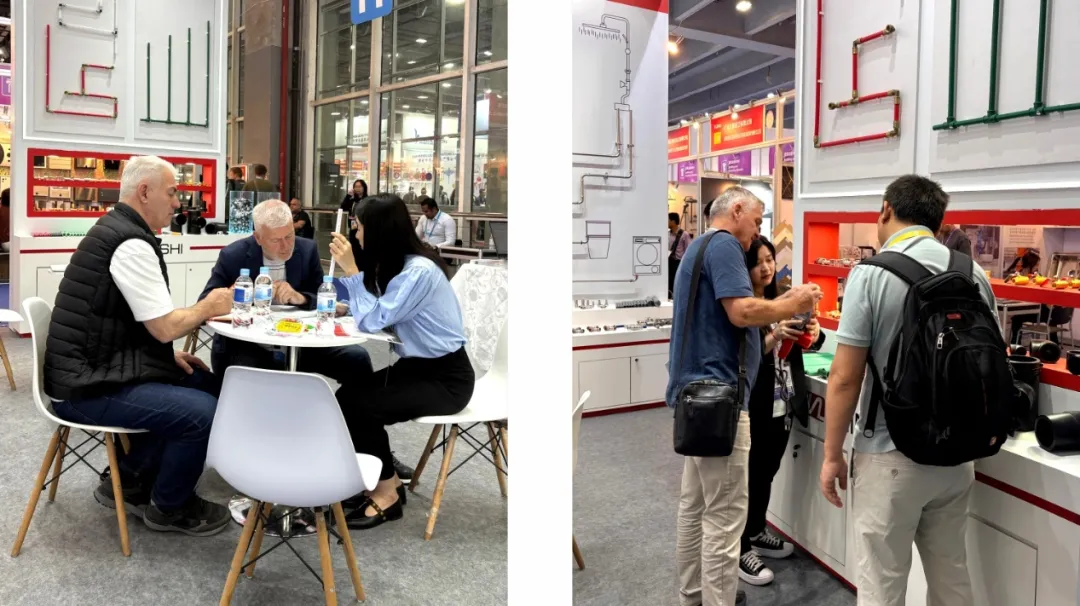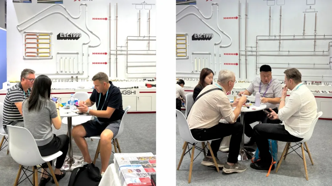 展馆内万商云集,人头攒动。铭仕展位前,更是热闹非凡:我们重点展出的铝塑复合管、不锈钢管、智能阀门及分水器系统,凭借优异性能和系统集成能力,吸引了众多客商。各种肤色人群的汇集,各种语言的交流,一个个微笑,一次次握手,形成了一道独特的风景……我们深知,每一次挑战都是一次市场的检验,是一次蜕变的契机。正如一统总所说:“广交会不仅是展示窗口,更是与全球客户面对面交流、快速响应市场需求的平台。我们将持续深耕暖通领域,以更高效、更可靠的解决方案服务全球市场。”