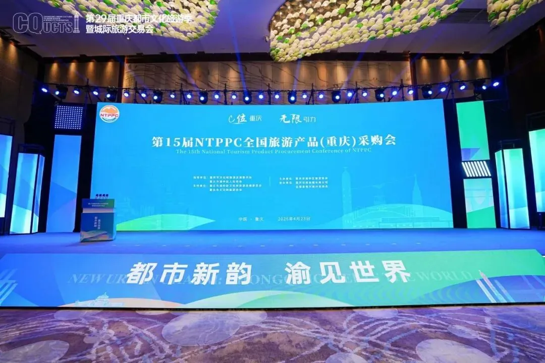 4月23日下午,由重庆市渝中区旅游协会主办的“第15届NTPPC全国旅游产品(重庆)采购会”在重庆威斯汀酒店举行。大会以“C位重庆·无限引力”为主题,汇聚了来自全国多省、市、自治区的文旅部门领导、行业协会负责人、旅游企业代表及供应商数百名嘉宾,共襄盛会,共谋文旅产业高质量发展新篇章。