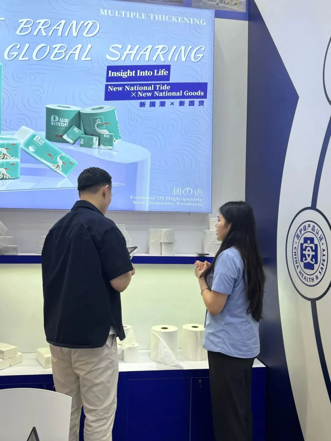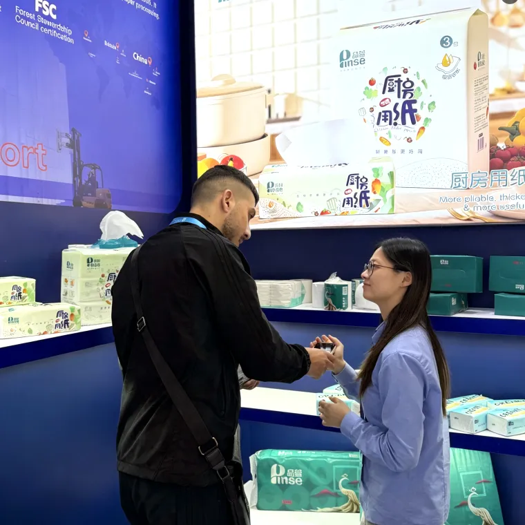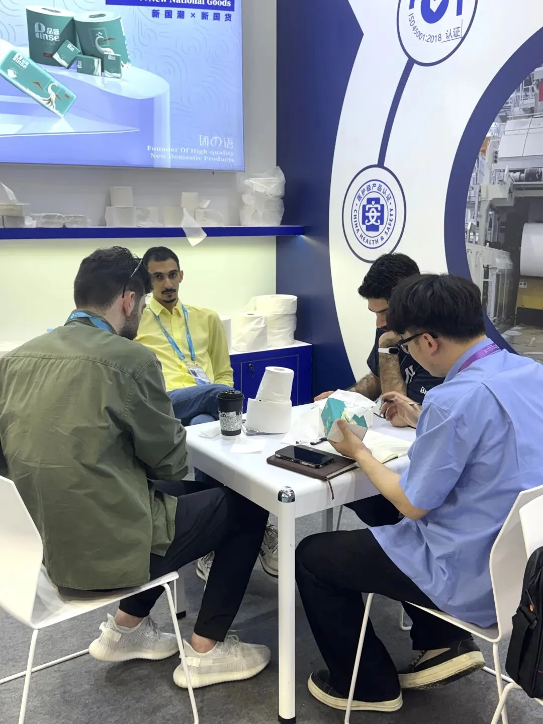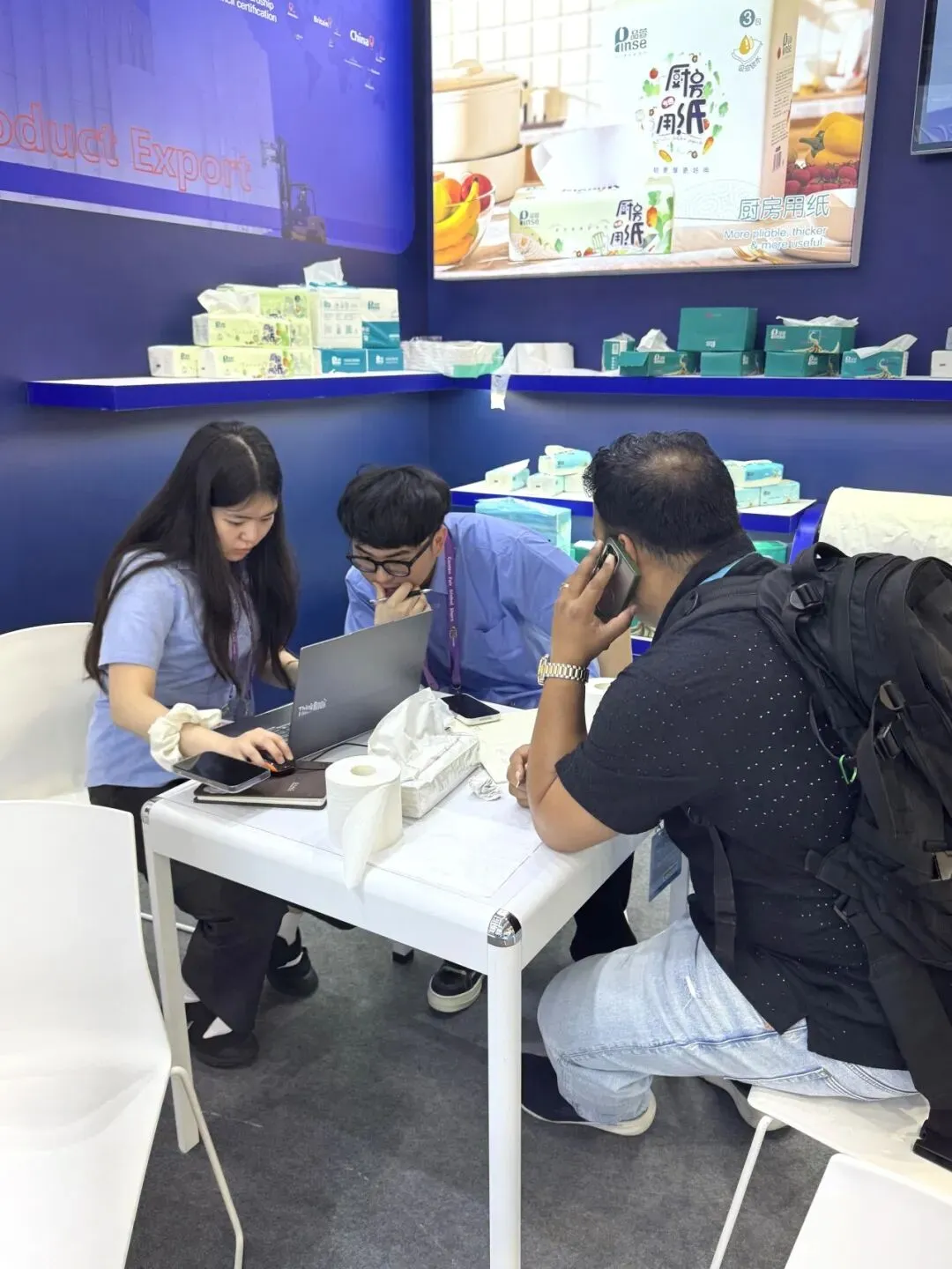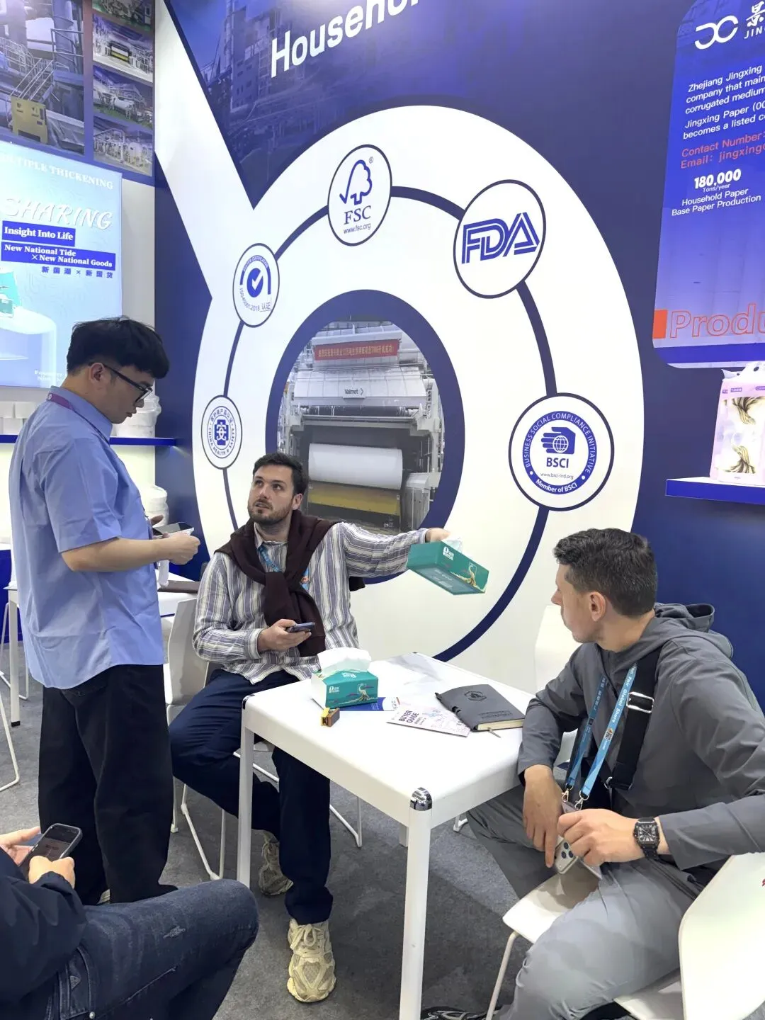 此次参展的生活用纸系列产品,均经严苛质检与国际环保认证,契合欧美、东南亚、中东等市场标准,尽显企业循环经济与可持续发展的创新成果。业务团队以专业热忱,向全球展示产品工艺与环保亮点,景兴展位人气高涨,境外采购商接踵而至,咨询洽谈火热,产品环保与品质广获认可。