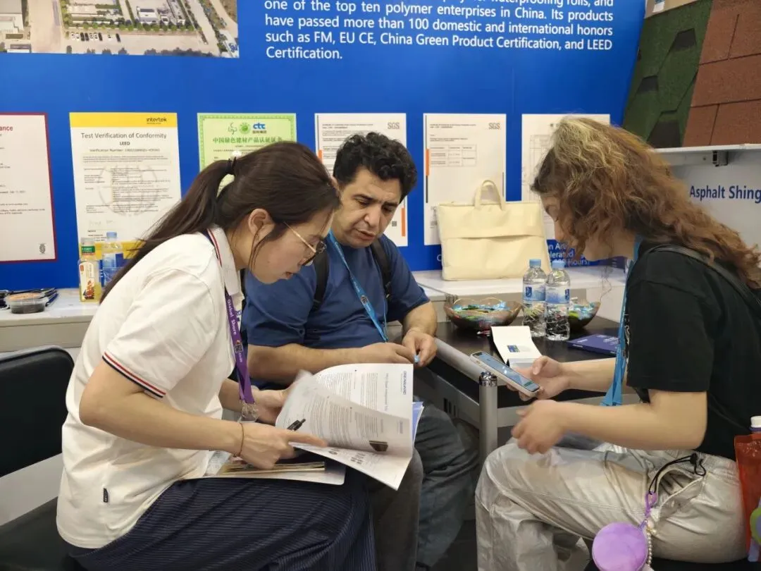 现场集中展示金属屋面防水、隔汽、紧固一体化配套体系,同步展出防水复合钢板、木结构专用沥青瓦、金属屋面修缮丁基胶带等核心产品,全面覆盖新建工程、老旧屋面修缮、建筑结构防护等全场景应用需求,凭借硬核产品力与系统解决方案,收获海内外采购商广泛关注。