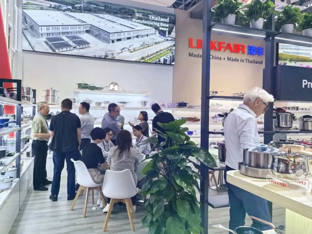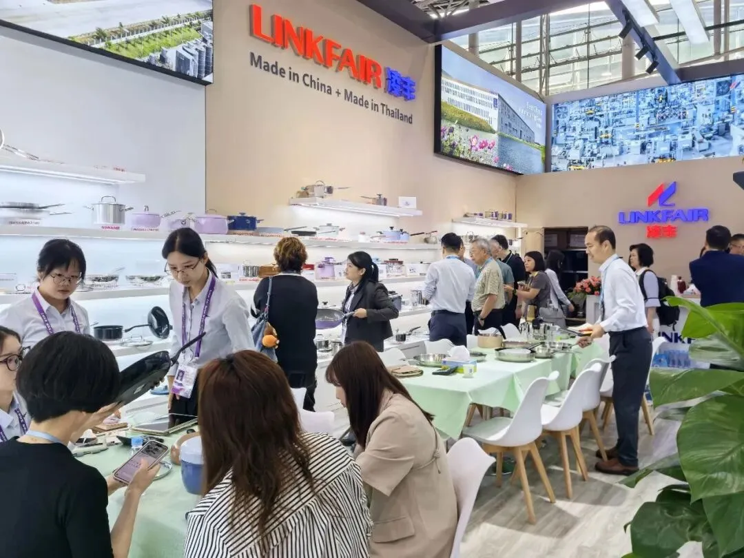 参展企业紧扣餐厨用品健康化、智能化、绿色化趋势,携多款新品集中亮相。面对外贸压力,企业以技术升级、场景化创新优化产品,深耕海外细分市场,抵御市场下行冲击。其中,广东凌丰家居用品股份有限公司发挥智造优势,材质升级,打造健康轻量化锅具,贴合海外使用需求,完善餐厨集采体系,助力产业向品质化、品牌化出海转型;广东万事泰集团有限公司聚焦绿色智能制造,依托专利技术推出环保钛锅、抗菌炒锅等新品,采用低碳原料,契合欧美高端市场要求,拓展海外高端合作。