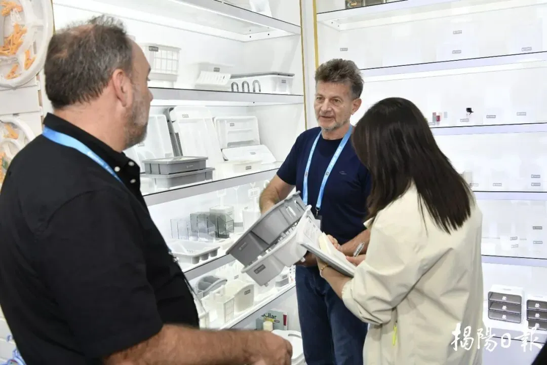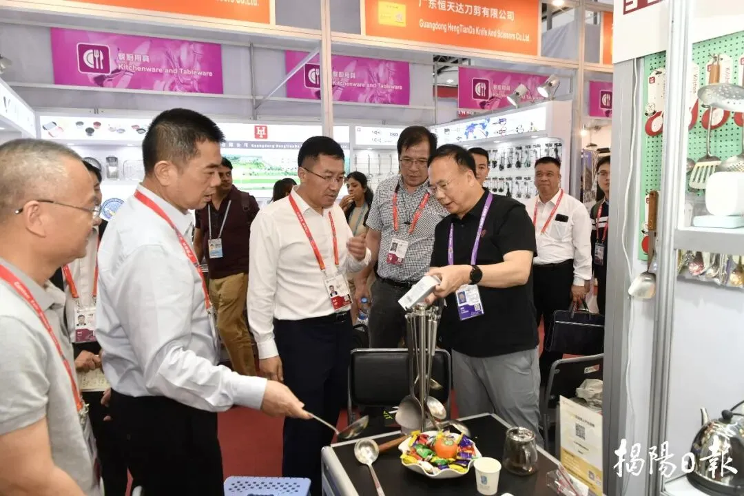 曲晓杰一行先后走访了揭阳市奇达餐具有限公司、广东鸿之兴实业有限公司、揭阳市兴财实业有限公司、广东万事达实业有限公司和广东海兴塑胶有限公司等重点企业展位,沿途调研其他参展企业,并专程深入餐厨用具小微企业集中展区,看望参展代表。在各展位前,曲晓杰仔细察看产品展示,详细询问客商洽谈、订单签约及市场开拓情况,鼓励企业坚定信心、主动出击,精准对接国际市场需求,努力争取更多订单。调研中,曲晓杰叮嘱企业要注重研发创新和自主品牌建设,以高质量产品赢得市场,不断做大做强。
